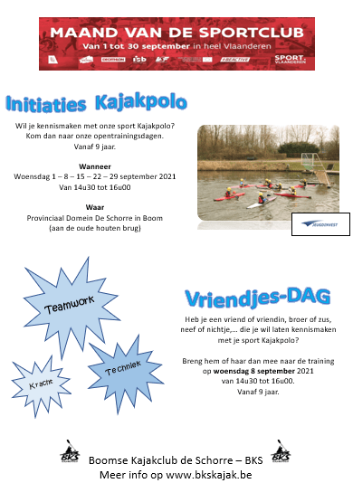 Een nieuwe editie van Maand van de Sportclub komt eraan! Van 1 tot 30 september 2021 wil Sport Vlaanderen, samen met sportdiensten en sportfederaties, alle sportclubs in de kijker zetten en inwoners in contact brengen met het lokale sportclubaanbod. Ook BKS – Boomse Kajakclub De Schorre – wordt in de kijker gezet.