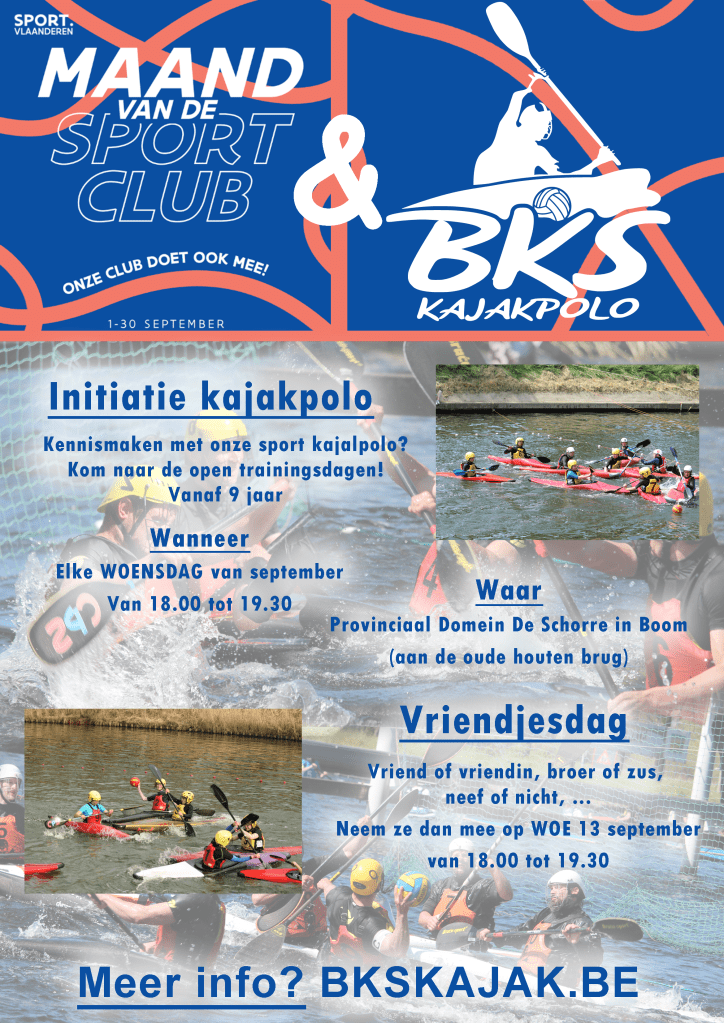 Proef gedurende 1 maand van het sportaanbod in jouw buurt en de ontdek een sportclub die bij je past. Ook BKS – Boomse Kajakclub De Schorre – wordt in de kijker gezet. Meer info https://www.sport.vlaanderen/sporters-beleven-meer/maand-van-de-sportclub/