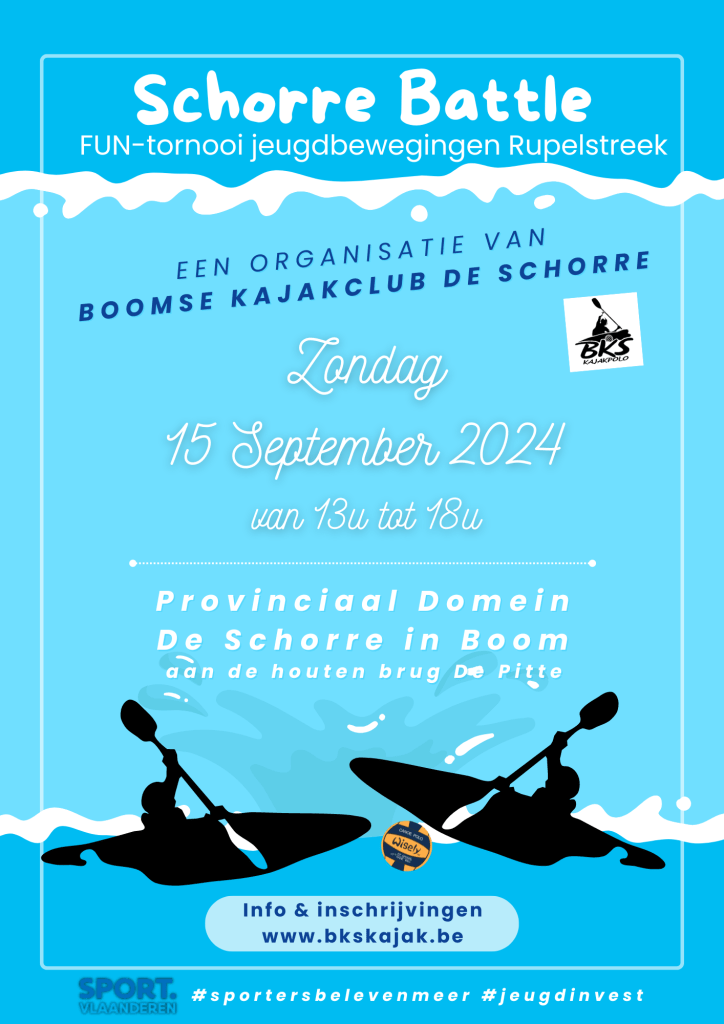 Tussen onze kajakpolospelers zitten heel wat Scouts, Gidsen, Chirovrouwen & -mannen, KLJ-ers, KSA-ers die met hun afdeling als eens geproefd hebben van onze sport kajakpolo tijdens initiaties. En misschien ook al hebben deelgenomen aan één van de vorige edities van de Schorre Battle.
