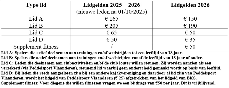 Vermelding: naam lid – type lid A/B/C/D (- supplement fitness)